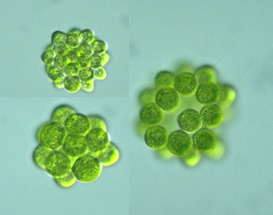 Coelastrum Genus: Colonies spherical, with inner empty space; cells attached to each other by a protrusion of cell wall, arranged in a single layer; cell body mostly spherical with some conical or grobular bulges; chloroplasts cup-shaped with a pyrenoid; reproduction by asexual coenobium (Illustrations of The Japanese Fresh-water Algae, 1977).