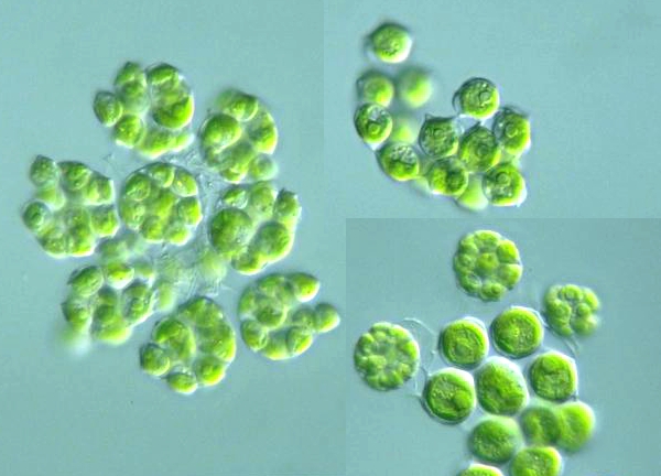 bulges; chloroplasts cup-shaped with a pyrenoid; reproduction by asexual coenobium
