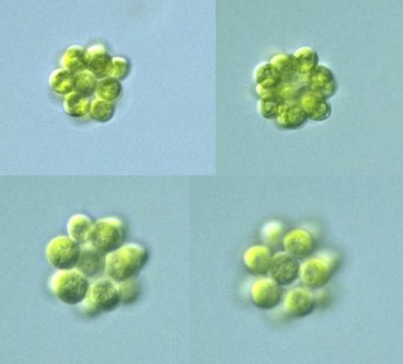 Genus: Colonies spherical, with inner empty space; cells attached to each other by a protrusion of cell wall, arranged in a single layer; cell body mostly spherical with some conical or grobular bulges; chloroplasts cup-shaped with a pyrenoid; reproduction by asexual coenobium (Illustrations of The Japanese Fresh-water Algae, 1977).