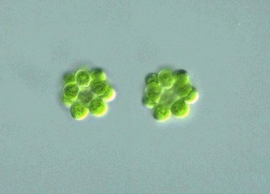 Coelastrum Family (Scenedesmaceae): Colonies of a fixed number of cells (4, 8, 16, 32, or more) arranged 2- or 3-dimensionally; cells spherical, ellipsoidal, polygonal, etc. in shape; chloroplasts 1 or several, plate-like in shape, with 1 pyrenoid; reproduction only by asexual autospores.