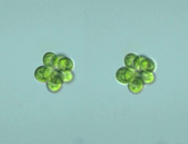 Coelastrum Family (Scenedesmaceae): Colonies of a fixed number of cells (4, 8, 16, 32, or more) arranged 2- or 3-dimensionally; cells spherical, ellipsoidal, polygonal, etc. in shape; chloroplasts 1 or several, plate-like in shape, with 1 pyrenoid; reproduction only by asexual autospores.