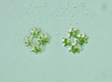 Species: Spherical colonies of 8, 16 or more cells within a gelatinous coat; cell body spherical 9-10 (-24) μm in diam., with 4-10 (-14) small truncate, wart-like processes; cells connected to adjacent ones by the basal stout processes (Photomicrographs of the Freshwater Algae, vol. 5, 1986).