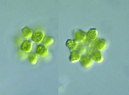 Genus: Colonies spherical, with inner empty space; cells attached to each other by a protrusion of