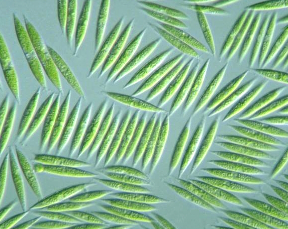 Monoraphidium litorale Genus: Cell body elongated spindle in shape, straight or curved, sharply pointed at both ends; (Guide book to the "Photomicrographs of the Freshwater Algae", 1998).