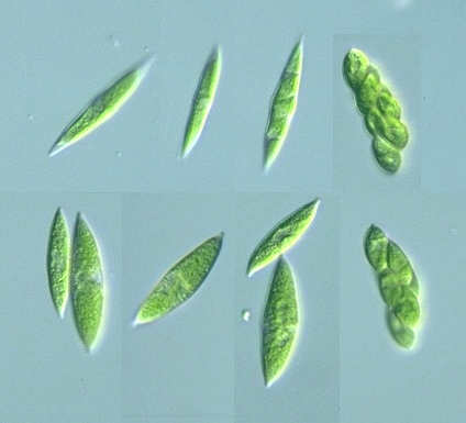 a mucous target; 22-43 micron long, 2-6 micron wide; a chloroplast pariental, trough-shaped,