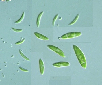 Genus: Cell body elongated spindle in shape, straight or curved, sharply pointed at both ends; (Guide book to the "Photomicrographs of the Freshwater Algae", 1998).