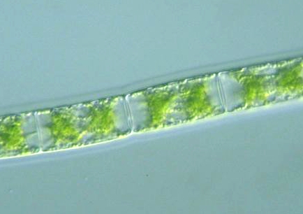 Zygnema Genus: Filament without branching; cell body cylindrical; two chloroplasts star-shaped; tubes formed (or cell body fused) at conjugation; zygospore spherical or broad ellipsoidal formed within female gametangium (Guide book to the "Photomicrographs of the Freshwater Algae", 1998).