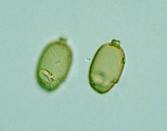 Trachelomonas Species: Collar present: lorica spherical or ellipsoidal: surface coarse Species: Lorica ellipsoid, both ends narrowly rounded, lateral sides swelled; collar present; wall scabrous with minute protuberances irregularly disposed; 23-26 μm long, 18-20 μm wide (Photomicrographs of the Fresh-water Algae, vol.8, 1988).
