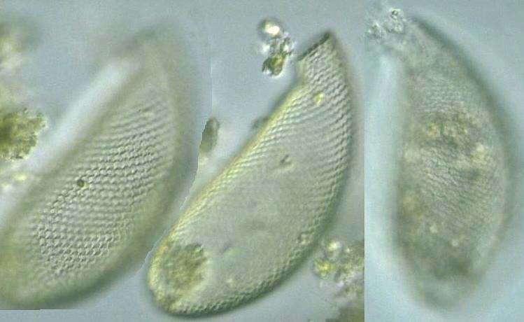Cyphoderia Genus: Test round in cross-section; scales usually adjacent; aperture truncate (Illustrated Guide, 1985).