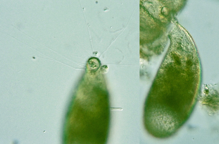 Species: 60-140 μm long; 30-75 μm diam.; neck diam. 12-25 μm; test clear, chitinoid, ovoid, round cross-section; with round adjoining scales in yellow matrix; short cylindrical neck, bent; pseudostome, round, 10-25 μm; pseudopods like Euglypha; nucleus spherical 20-30 μm; synonyms, C. margaritacea, C. myosurus (Illustrated Guide, 1985).