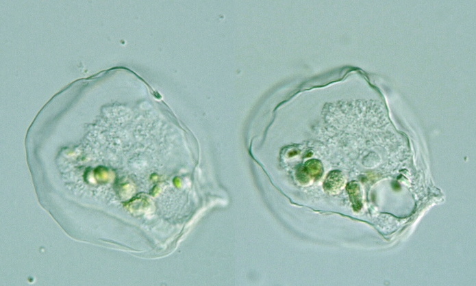 thin extensions toward posterior end along sides; uninucleate (Page, 1976).