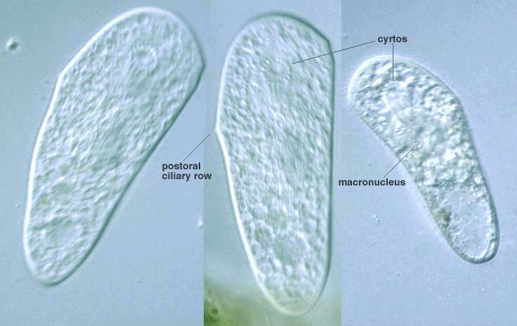 Chilodontopsis Genus: Both body surfaces ciliated (Illustrated Guide, 1985). Body ovoid or anterior projected toward left; flattened on both sides; both surface ciliated; cyrtos straight; a large macronucleus (Carey, 1992).