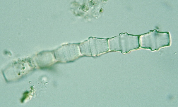 Bambusina brebissonii Kützing (Syn.: Gymnozyga moniliformis (Ehrenberg) Kützing), cell body 30 μm long, 20 μm wide, L/W=1.5, x 640, Hikage marsh, Shiga highland, Yamanouchi town, Nagano Pref., Japan, June 19, 2005 by Y. Tsukii