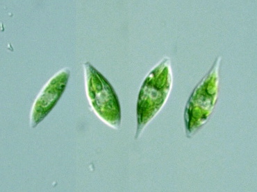 chloroplasts plate-like, with two large pyrenoids one located at anterior half and another at posterior half,