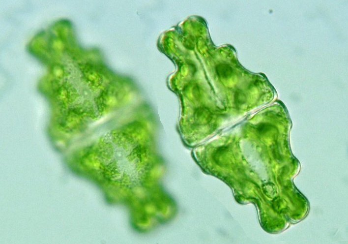 Species: Cell body elongated ellipsoidal, 98-117-(123) μm long, 53-64-(67) μm wide, L/W=2; semicells consisting of five lobes (one terminal, four lateral); bay opening between terminal and anterior lateral lobe is deep and narrow; anterior lateral lobes smaller than posterior one; posterior lobes with slight depressions; terminal lobe laterally extended and apically flattened; semicell with 5 bulges (2 anterior, 3 posterior), 1 pore present between the anterior bulges (Illustrations of The Japanese Fresh-water Algae, 1977).