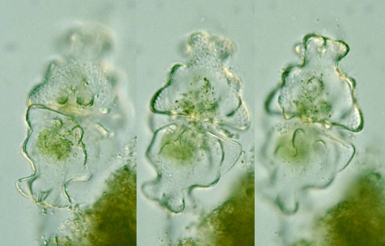 Euastrum ampullaceum Ralfs, semicell 56 μm long, 48 μm wide, L/W=, isthmus ?? μm wide, x 640, Oze-shokubutu-kenkyu-mihonen, Oze-ga-hara (Oze marsh), Katashina village, Gunma Pref., Japan, June 29, 2006 by Y. Tsukii