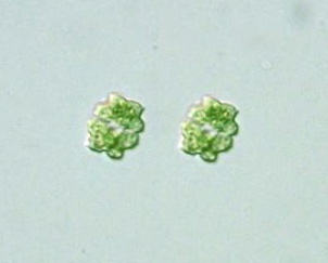 Euastrum binale var. sectum Turner, cell body 16 μm long, 14 μm wide, isthmus 4 μm wide, x 640, Kodanuki marsh, Fujinomiya city, Shizuoka Pref., Japan, April 29, 2006 by Y. Tsukii