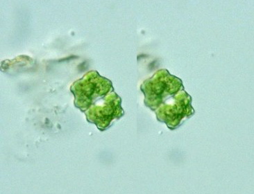 Euastrum binale var. parallelum Hirano (or E. sublobatum var. obtusatum (Gutwinski) Krieger ?), cell body μm long, μm wide, L/W=, isthmus μm wide, x 640, Kareki-numa marsh, Nikko city (formerly Fujiwara town), Tochigi Pref., Japan, August 2, 2008, collected by Eizaburo Tsukii, photo by Y. Tsukii