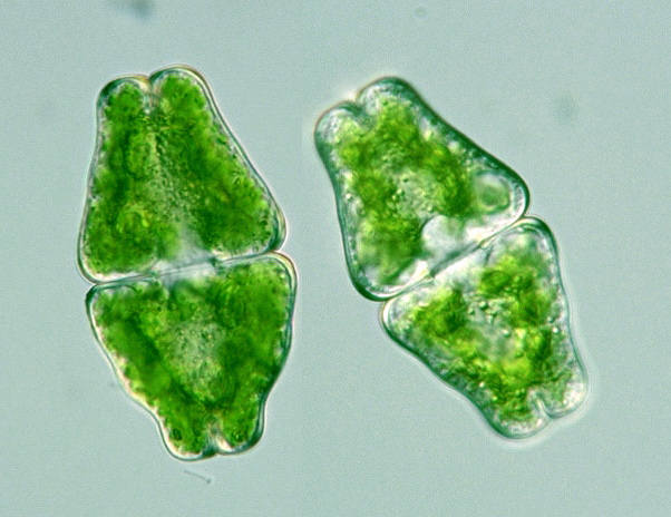 Cell body 97 μm long, 50 μm wide, L/W=1.9, isthmus 15 μm wide, x 640
