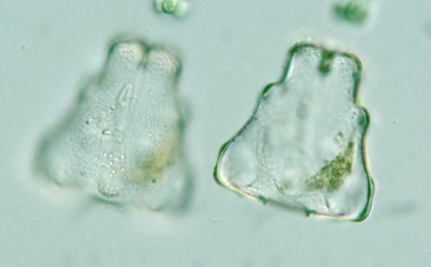 Cell body 127 μm long, 70 μm wide, L/W=, isthmus 23 μm wide, x 640