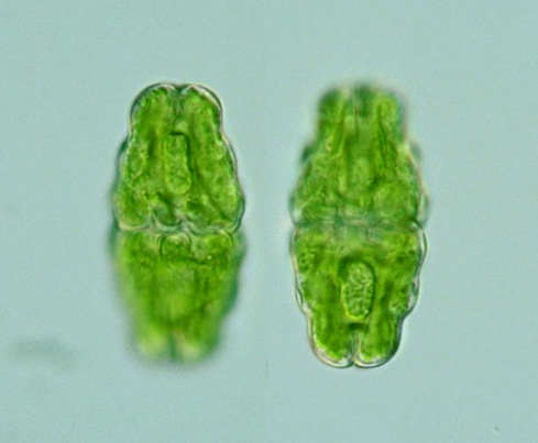 Species: Cell body 47-73 μm long, 34-36 μm wide, isthmus 11-14 μm wide (Illustrations of The Japanese Fresh-water Algae, 1977).