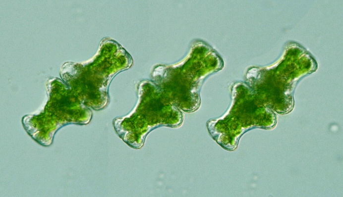 Species: Cell body 62-75.6 μm long, 31-33.6 μm wide, L/W=2, isthmus 8.4-11 μm wide; (Illustrations of The Japanese Fresh-water Algae, 1977).