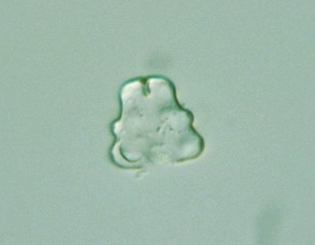Species: Cell body 60-74 μm long, 34-46 μm wide, isthmus 8-15 μm wide, (Illustrations of the Fresh-water Algae, 1977).