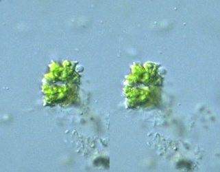 Euastrum subalpinum Messikommer var. subalpinum, cell body 20 μm long, μm wide, isthmus μm wide, x 640, Omine-numa (pond/marsh), Tsukiyono town, Gunma Pref., Japan, September 2003 by Y. Tsukii