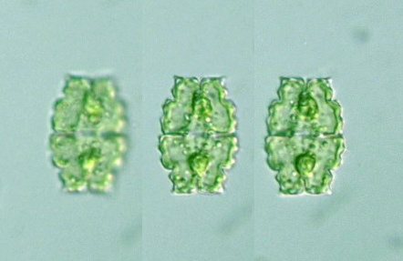 Species: Cell body 36-43 μm long, 27-28 μm wide, L/W=1.3, constriction 8-9 μm wide (Illustrations of The Japanese Fresh-water Algae, 1977).