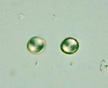 Phacotus lenticularis ? (Phacotaceae, Volvocales, Chlorophyceae), test about 17 μm in diam., μm in thickness, x 640, Kiyasse-Hanyu (Mitagaya Agriculture Park), Mitagaya, Hanyu city, Saitama Pref., Japan, March 4, 2006 by Y. Tsukii