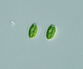 Pteromonas multipyrenoidea Lemmermann or similar species (P. cordiformis ?), cell body 15 μm long, 8 μm wide, x 640, rice field, Shimo-muneoka, Shiki city, Saitama Pref., Japan, October 24, 2004 by Y. Tsukii