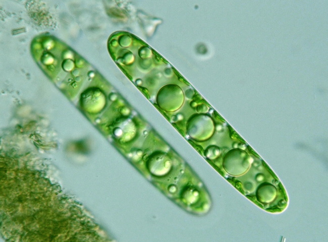 * Spirotaenia condensata Brébisson: Vegetative cells large, cigar-shaped, 60-334 μm long, 10-30.4 μm diam., spiral band-form chloroplasts (Illustrations of The Japanese Fresh-water Algae, 1977).
