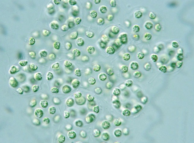 Volvulina steinii Playfair, daughter colonies formed within a mother colony, cell body μm long, μm wide, x 640, rice field, Higashi-sano (near Minami-kamishiro railway station), Hakuba village, Nagano Pref., Japan, October 3, 2004 by Y. Tsukii