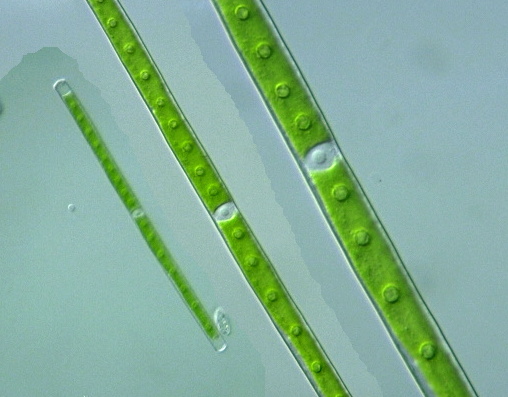 Gonatozygon kinahani (or Mougeotia sp. ?), cell body μm long, 13 μm wide, x 640, Ooi-Yacho Park, Ota-ku, Tokyo, Japan, January 2003 by Y. Tsukii