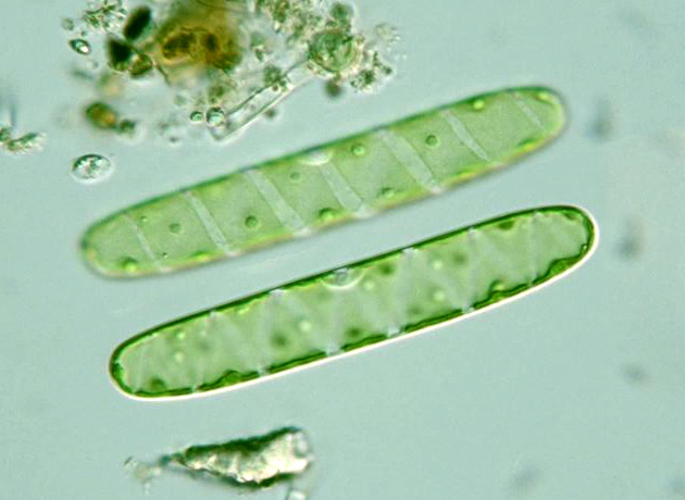 Spirotaenia condensata Brébisson, cell body 133 μm long, 21.5 μm wide, x 640, Iyari marsh, Omachi city, Nagano Pref., Japan, May 8, 2006 by Y. Tsukii