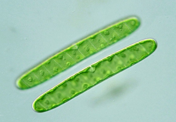 Spirotaenia condensata Genus: Cell body cylindroid or spindle in shape; spiral ribbon-like chloroplasts or laminae of the chloroplast arranged spirally around central rod (Illustrations of The Japanese Fresh-water Algae, 1977).