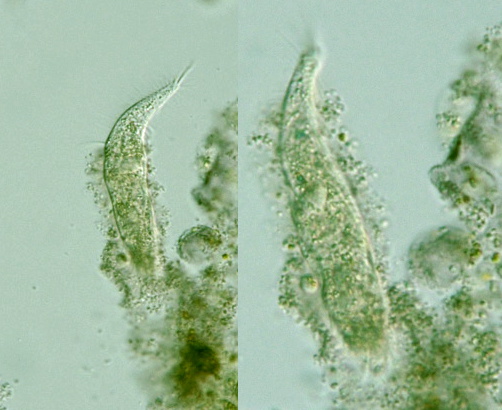 Stichotricha secunda Perty, cell body 110 μm long, 20 μm wide, L/W=, x 400, x 640, Yamanohana, Oze-ga-hara (Oze marsh), Katashina village, Gunma Pref., Japan, June 29, 2006 by Y. Tsukii