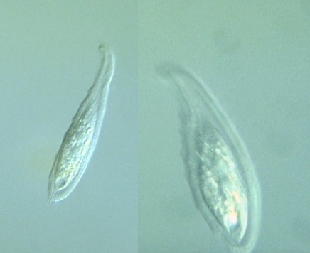 Species: a very common species; elongate; 160 μm long; with a neck region and rounded tail; highly contractile; two ovoid macronuclei; a single contractile vacuole (Carey, 1992).