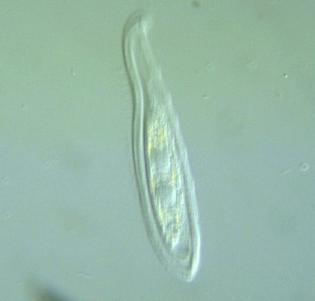 Loxophyllum helus (Stokes, 1884) Kahl, 1931, cell body 115 μm long, μm wide, x 640, Showa-machi general park, Showa town, Saitama Pref., Japan, August 2003 by Y. Tsukii