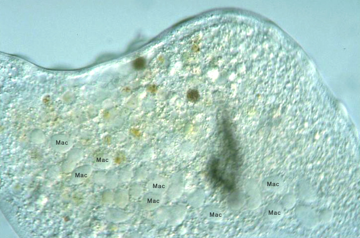 Loxophyllum meleagris, cell body 488 μm long, μm wide, x 200, x 400, x 640, Hakusui-Oike Park, Kasuga city, Fukuoka Pref., Japan, October 2001 by Y. Tsukii