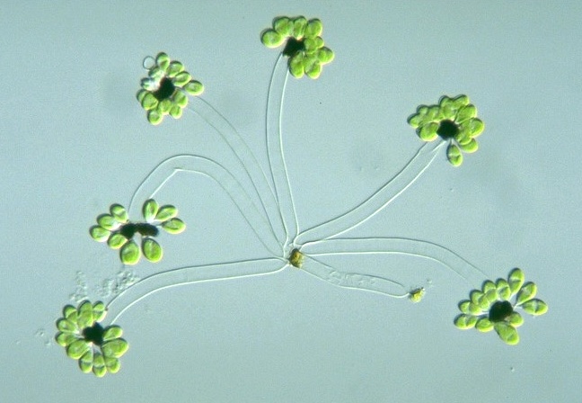 Ophiocytium arbuscula Genus: Unicellular; planktonic; cell body elongated cylindroid, curved or twisted; both ends rounded, with spiny projections; cell wall not separated into two parts (compare to Centritractus); several chloroplasts plate-like, without pyrenoids (Guide book to the "Photomicrographs of the Freshwater Algae", 1998).