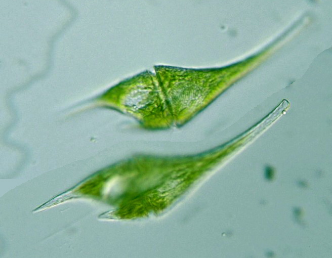 Ceratium furca (Ehrenberg) , cell body 165 μm long, 38 μm wide, x 640, Sannoh park, Nishi-ku, Saitama city, Saitama Pref., Japan, July 4, 2004 by Y. Tsukii