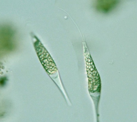 composed of 2 rods; no eyespot; cell body plastic, solitary, elongated, tapering, not flattened;