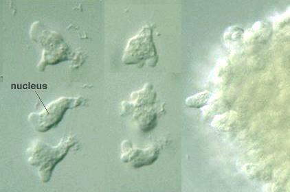Vahlkampfia russelli: Locomotive 30-40 μm long, cysts to 20 μm diam. (How to know the protozoa, 1979).
