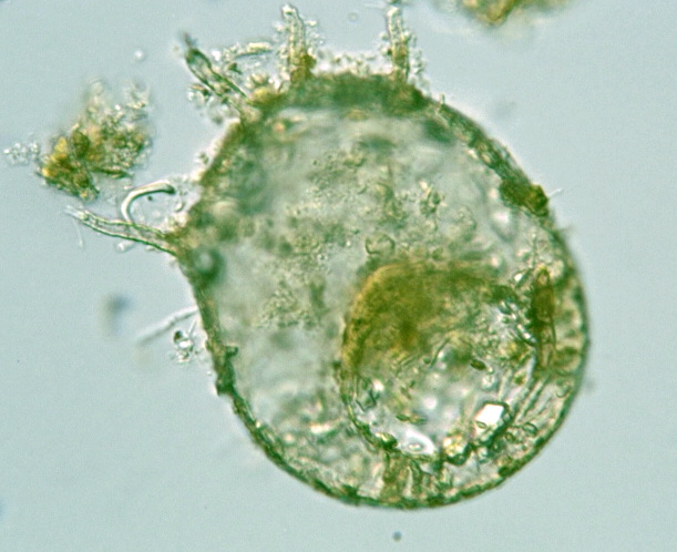 Centropyxis aculeata Genus: Test circular, ovoid or discoid; pseudostome eccentric, circular or ovoidal; with or without spines (Kudo, 1966).