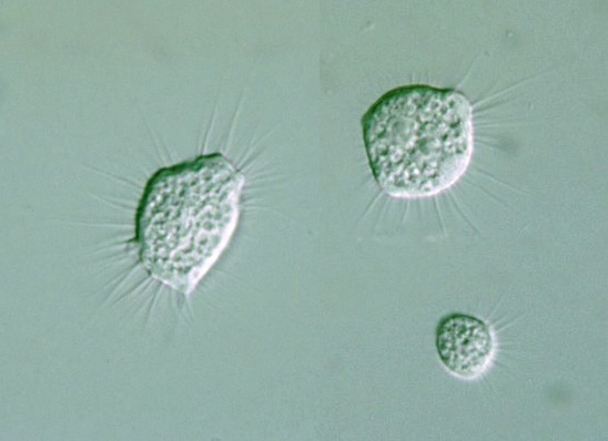 Genus: Algophorous, but free-living, cytoplasm clear to green, pseudopodia straight,