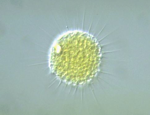 Vampyrella sp., cell body 48-50 μm wide, x 640, Zenko-ji (temple), Nagano city, Nagano Pref., Japan, September 2003, by Y. Tsukii