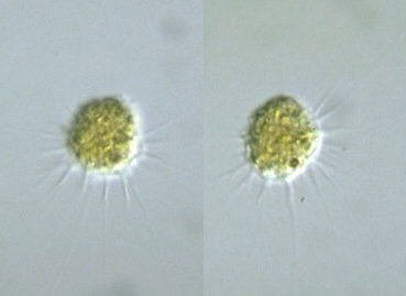 Vampyrella sp., cell body 18-22 μm wide, x 640, Omine-numa (pond/marsh), Tsukiyono town, Gunma Pref., Japan, September 2003 by Y. Tsukii
